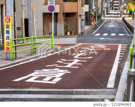 舗装後の道路標示と補助線 細い道の減速路面標示 高彩度コントラスト