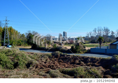 新三国橋際の堤防から遠望する古河市の中心部