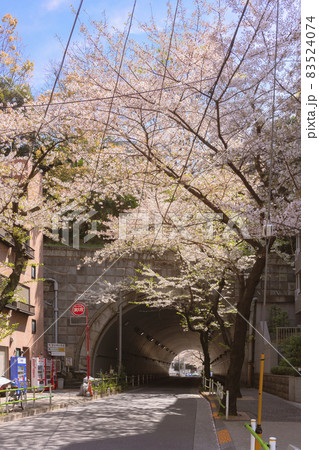 [東京・神谷町] 満開の桜に覆われた愛宕神社に導く愛宕山を潜るトンネル。