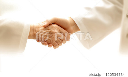 高齢の患者と医師が握手を交わす心温まる医療シーン
