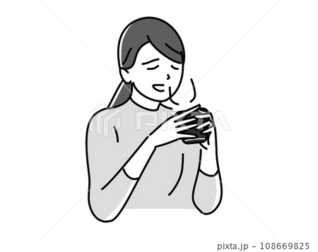 飲み物を飲んでほっとひと息する女性