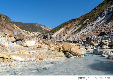 安達太良山、自然の恵み・湯けむりの源泉風景