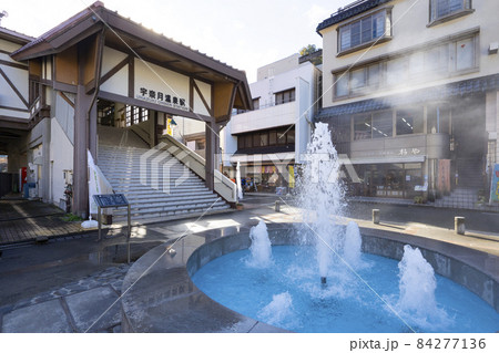 富山県黒部市の宇奈月温泉駅前にある温泉噴水・観光名所・観光地