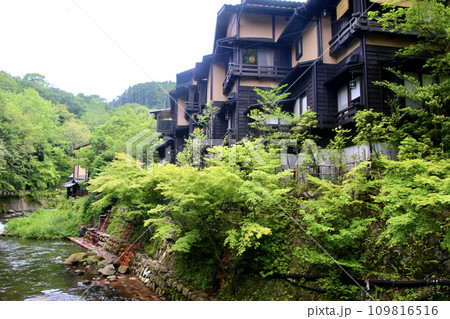 店舗風景 緑ゆたかな山々に囲まれ、三十軒の旅館が集まった「黒川温泉郷」熊本県阿蘇郡南小国町