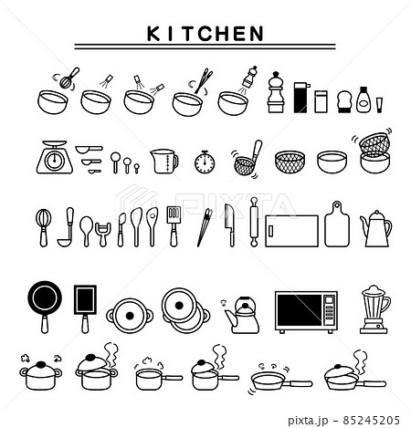 手書きの調理器具のイラストのセット/キッチン/道具/おしゃれ/料理