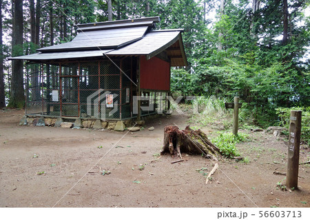 惣岳山山頂の標柱と青渭神社奥宮(東京都青梅市)