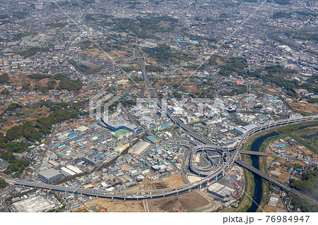 神奈川県横浜市の港北インターチェンジ付近を空撮