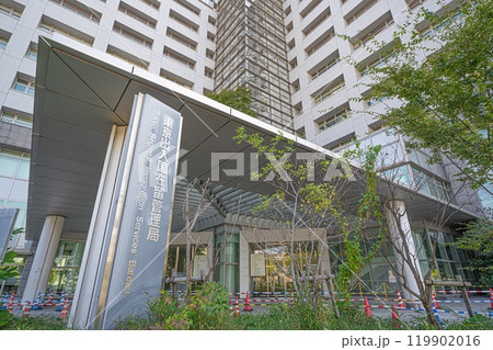 日本の横浜都市景観 横浜市営地下鉄 港南中央駅。港南区総合庁舎(港南区役所・港南消防署)…=3日