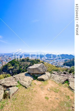 〈鳥取県〉春の米子城跡 大天守台から街並みの風景 4月