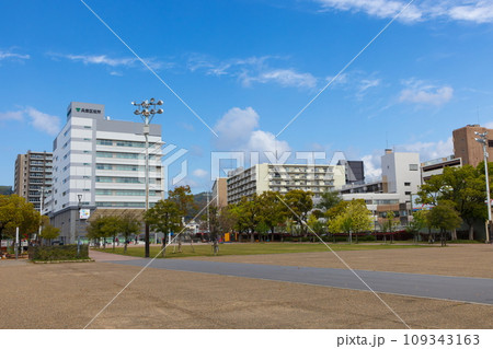 湊川公園の広場から見た神戸市兵庫区役所