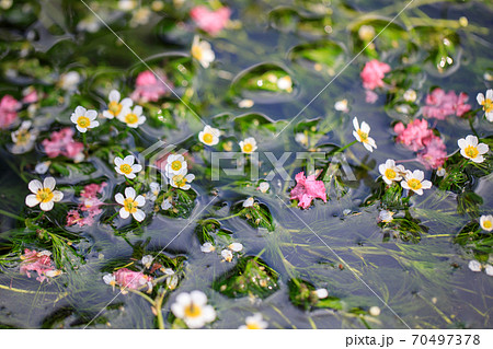 滋賀県米原市 旧中山道の醒井宿を流れる地蔵川に咲く梅花藻