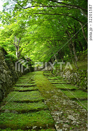 滋賀県東近江市 新緑の百済寺本坊から本堂への石段の弥勒坂との分かれ道