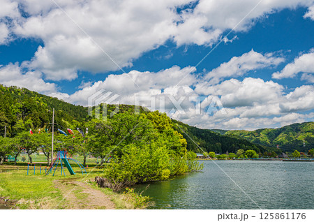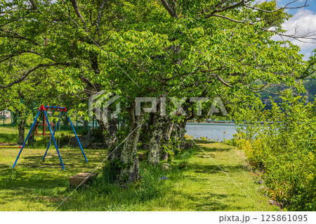 初夏の余呉湖畔の小さな公園 滋賀県長浜市余呉町