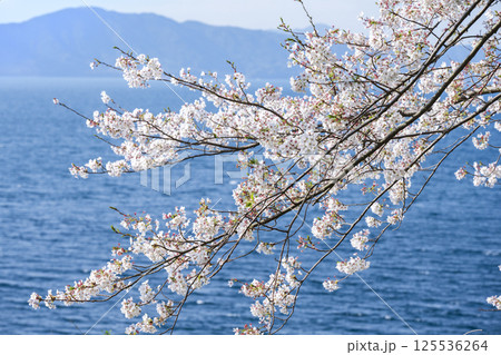 熊本県水俣市 湯の児海岸道路に咲く桜の並木道と八代海