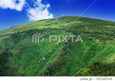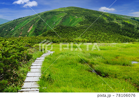 平ヶ岳山頂への道 池ノ岳湿原越しの山頂