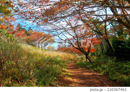 箱根ハイキングコース 湯坂路の浅間山と宮ノ下分岐付近の紅葉