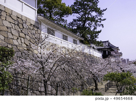 広島 桜満開の福山城 天守と筋鉄御門(福山駅から)