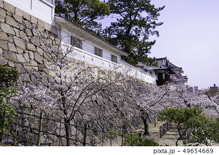広島 桜満開の福山城 筋鉄御門と天守(福山駅から)