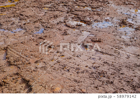雨でぬかるむ泥土のテクスチャ背景・群馬県みどり市