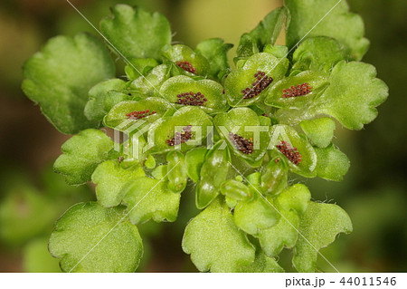 自然 植物 ヤマネコノメソウ、薄暗い湿った林床を覆っています。四月には種播きの準備完了?