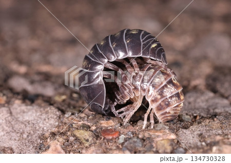 生き物 甲殻類 ダンゴムシ、正式名称は『オカダンゴムシ』。灰色一色はオス、黄色の斑入りはメスです