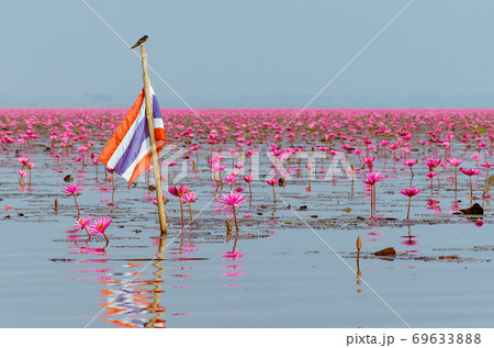 Scenery of the Red Lotus Sea is Seasonal Landmark of Udon Thani Province of Thailand.