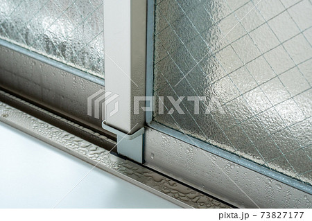 窓ガラスについた朝露 写真素材