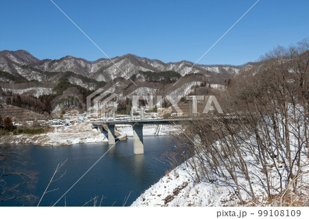雪の八ッ場あがつま湖 八ッ場大橋より上流 不動大橋方向