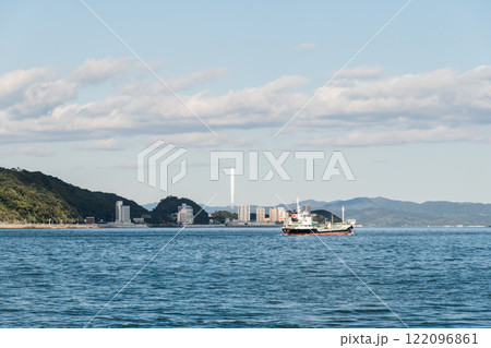 【北九州門司港 和布刈からの関門海峡と貨物船】