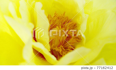雌しべと雄しべにクローズアップした黄色の牡丹の花