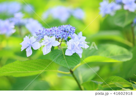 水色ガクアジサイの花