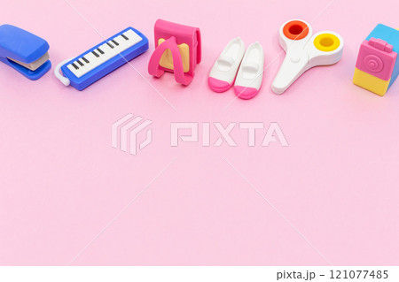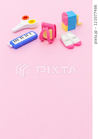 ランドセルや上履きなどの小学校入学準備 ピンク背景素材