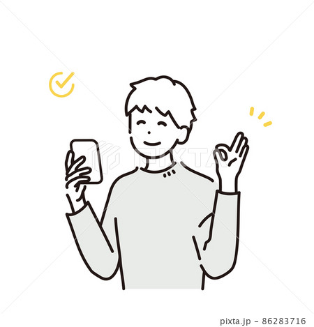 スマートフォンを持ってOKサインをする男性のイラスト素材