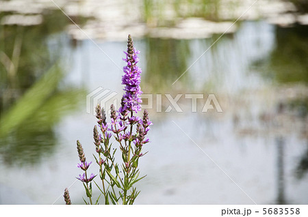 湿地の花・水辺に咲く禊ぎの花ミソハギ・横位置