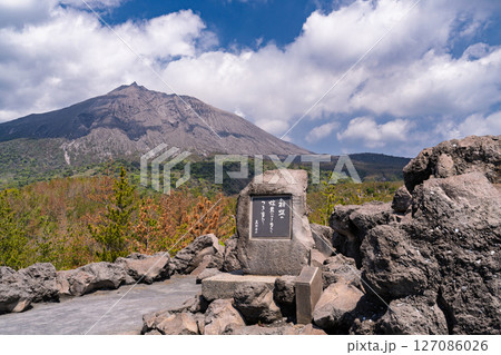 鹿児島 桜島の噴煙 有村溶岩展望所の遊歩道