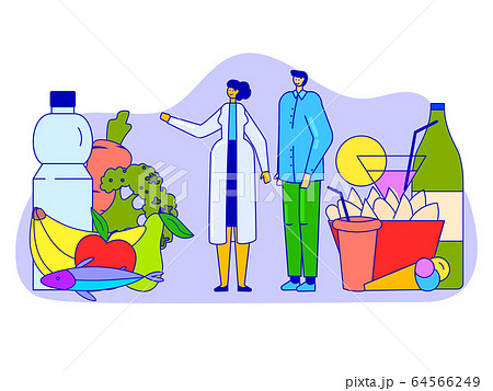 Healthy eating concept, nutritionist recommends balanced food diet for people, vector illustration