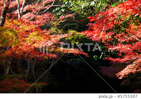 愛媛県滑床渓谷の鮮やかな紅葉群