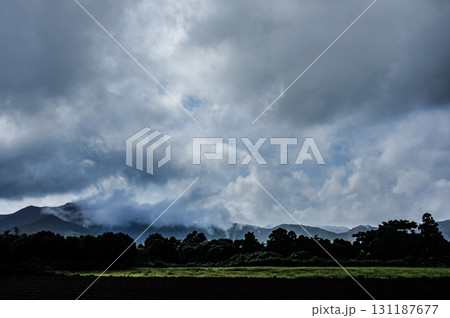 <素材>雨の日に立ちのぼる滑昇霧(山霧)