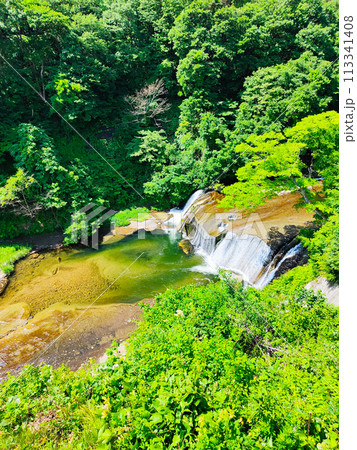 新緑の滑津大滝 白石川の流れ 宮城県七ヶ宿町