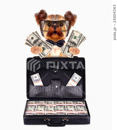 Funny dogs behind briefcase full of money