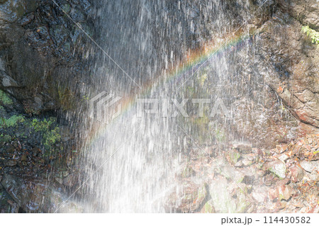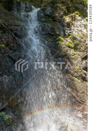 御岳山麓小坂のからたに滝にかかる虹