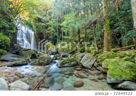 光芒の差し込む渓流 桑ノ木の滝(桑ノ木谷)和歌山県新宮市