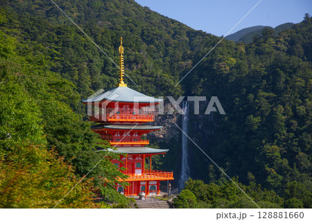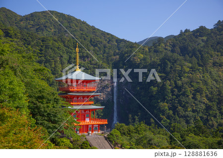 熊野那智大社 青岸渡寺の三重塔と那智の滝