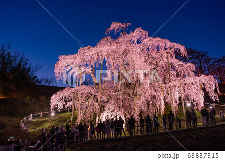 福島県 三春滝桜 ライトアップ 夕暮れ時