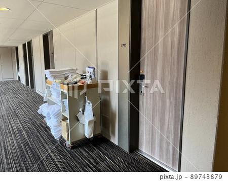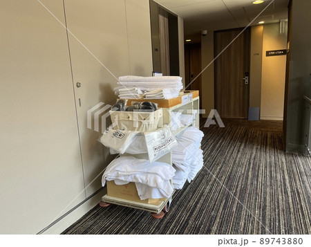 ホテルの客室を清掃するハウスキーピングの清掃ワゴン