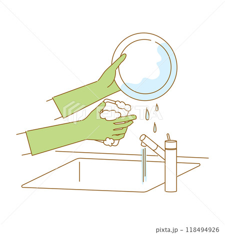 しもやけの対策:ゴム手袋を着けて食器を洗うイメージイラスト