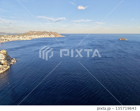 vast waters with calm surroundings, peaceful maritime panorama showcasing distant coastlines and serenity