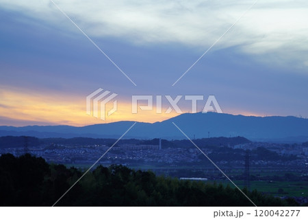 新春の奈良布目ダム寒風吹きすさぶ夕景 燃えるような夕焼けを背景に墨絵のような対岸の山④