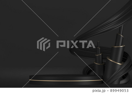 black stage podium for products decoration suitable .3D rendering