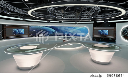 Virtual TV Studio News Set 28. 3d Rendering.